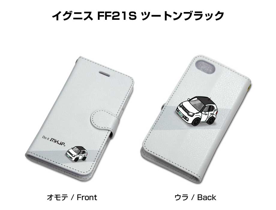 ボディ25色設定 手帳型iPhoneケース スズキ イグニス FF21S ツートンブラック