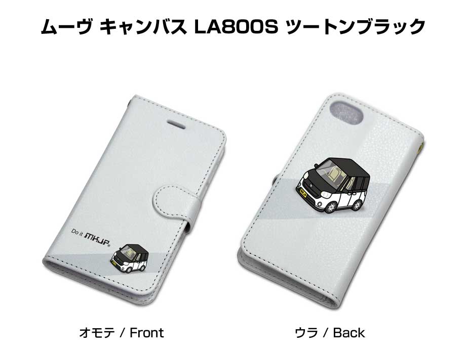 ボディ25色設定 手帳型iPhoneケース ダイハツ ムーヴ キャンバス LA800S ツートンブラック