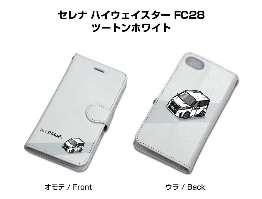 ボディ25色設定 手帳型iPhoneケース ニッサン セレナ ハイウェイスター FC28 ツートンホワイト