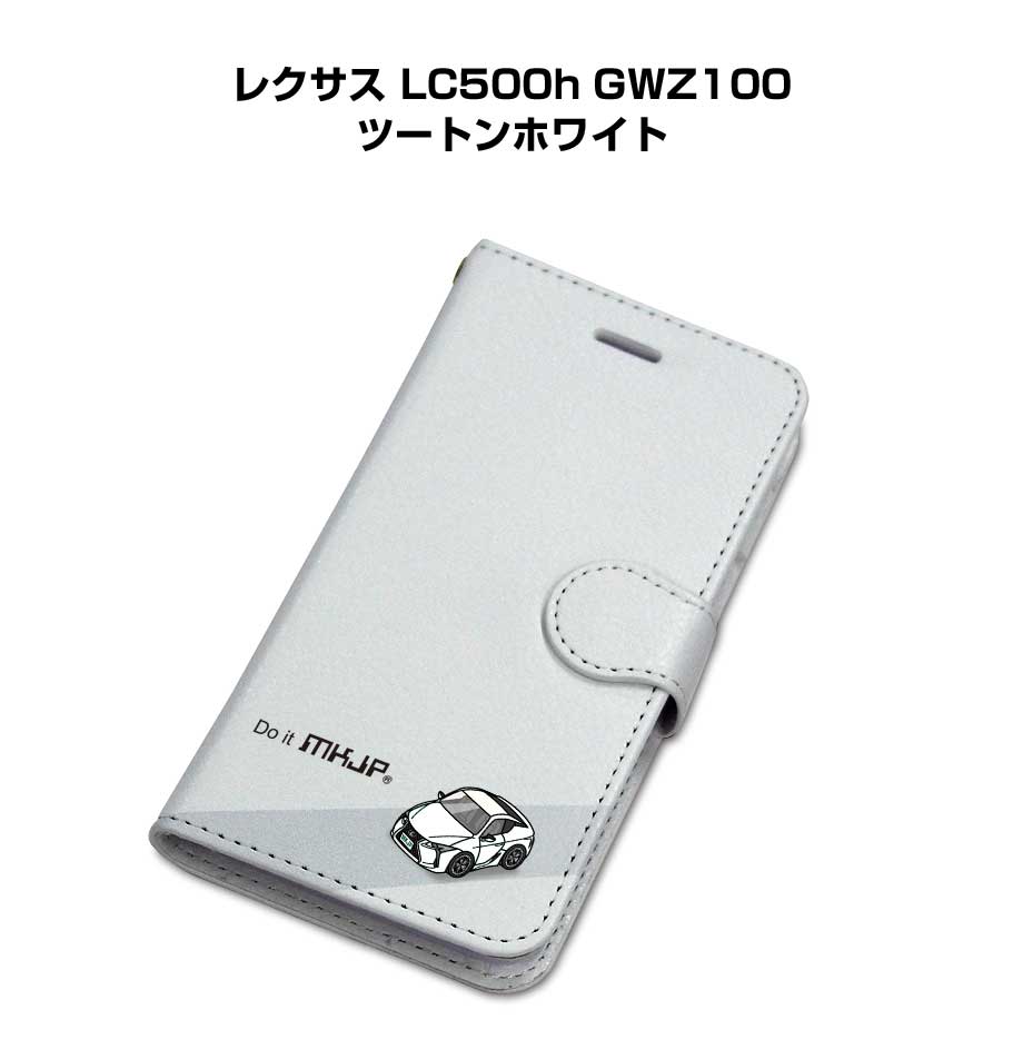 ボディ25色設定 手帳型iPhoneケース 外車 レクサス LC500h GWZ100 ツートンホワイト