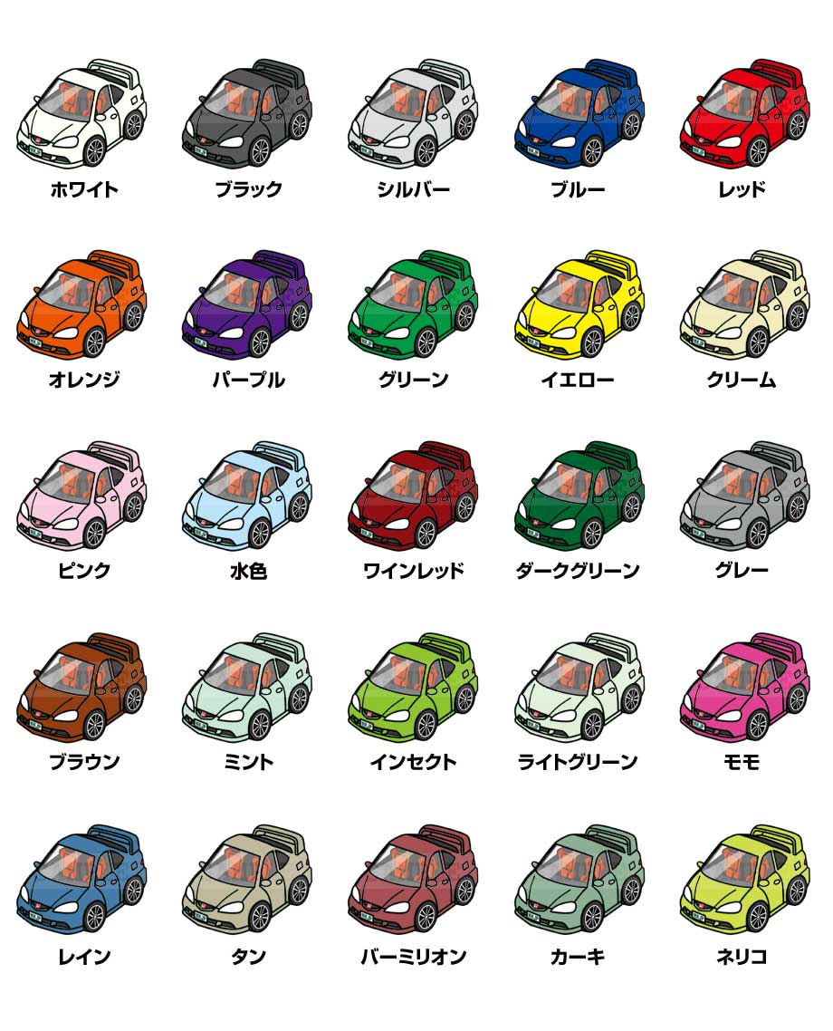 好きな車カラーが選択できます。車カラーは25種類。